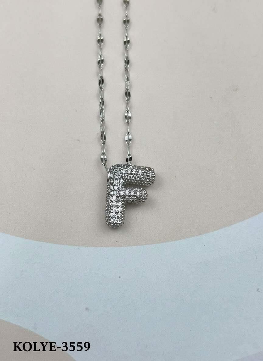 Çelik Silver Taşlı Balon Harf Kolye 45cm (F) // KOLYE-3559